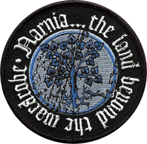 This is a 3 1/4″ wide mint, embroidered patch which features the Tree logo from the hit Disney film The Chronicles of Narnia, The Lion, The Witch and the Wardrobe. It has the phrase “Narnia…the land beyond the wardrobe.” circling the tree. This is a new, unused patch now out of production. It has a glue backing for easy application to hats, shirts, jackets and bags and is stored in a smoke and pet free environment.