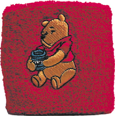 This is a mint, unused, sport wrist band featuring a sitting figure of Winnie holding a jar of honey from the animated adventures of Winnie the Pooh. It has been stored in a smoke and pet free environment.