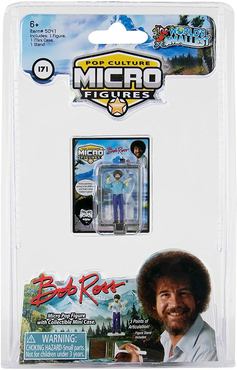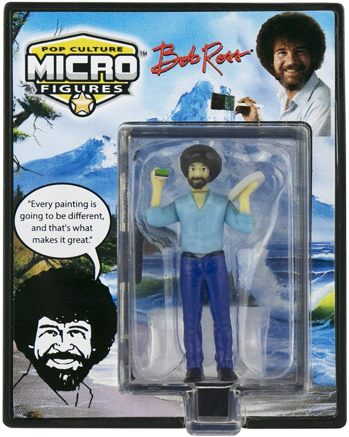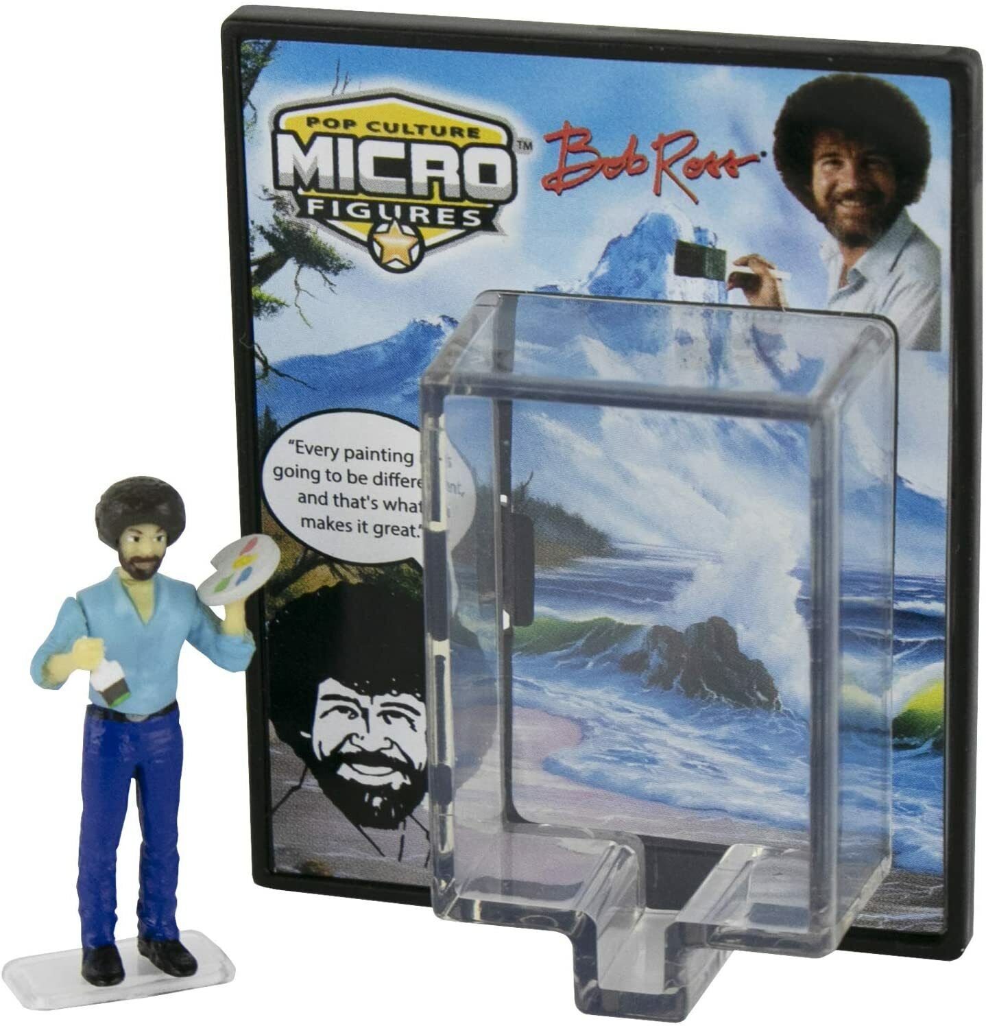 Produced by Super Impulse, this is part of their World’s Smallest line of toys. This features the cultish Bob Ross from the TV series The Joy of Painting. He is stock #171, measures approximately 1.25″ tall, has 3 points of articulation and includes a stand and display box. We pulled this from a sealed case that we bought direct from Super Impulse and they have been stored in a smoke and pet free environment.