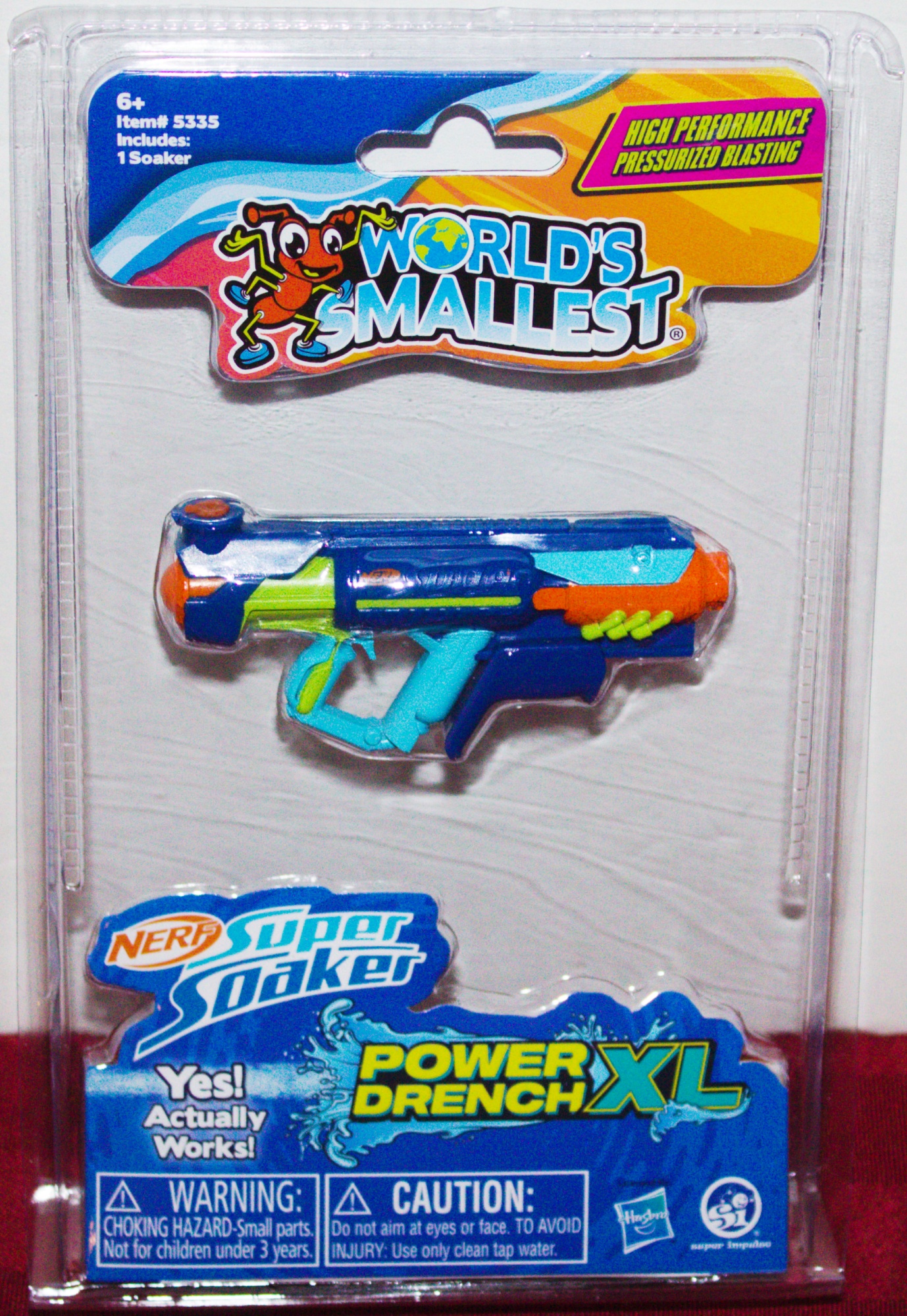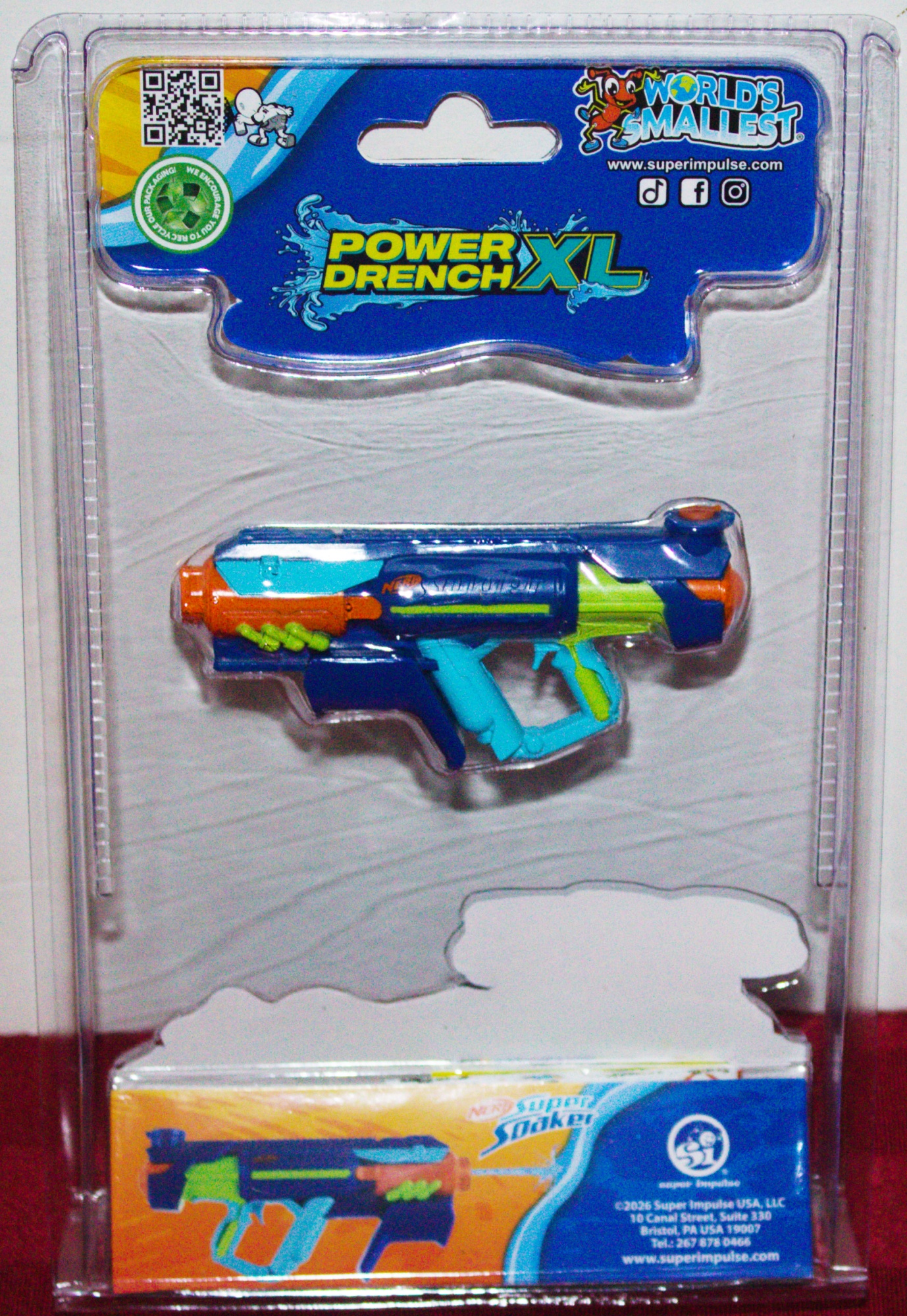 Produced by Super Impulse, this is part of their World’s Smallest line of toys. This features the popular Nerf Super Soaker Powser Drench XL. It is stock #5335 and measures approximately 3.625″ wide and actually works. We pulled this from a sealed case that we bought direct from Super Impulse and it has been stored in a smoke and pet free environment.