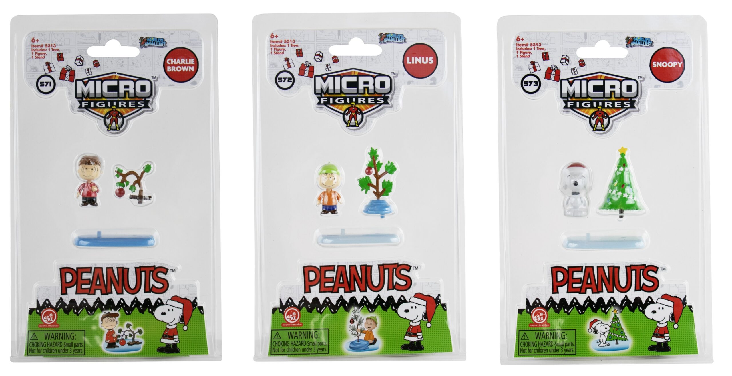 Produced by Super Impulse, this is part of their World’s Smallest line of figures. This three figure set features the classic Charlie Brown, Linus and Snoopy, each with a version of their famous Christmas tree along with a stand, from the iconic Peanuts TV Christmas movie. This is stock #5313, and they are each in a sealed plastic display and the figures are approximately 1.25″ tall. We pulled them from a sealed case that we bought direct from Super Impulse and they have been stored in a smoke and pet free environment.