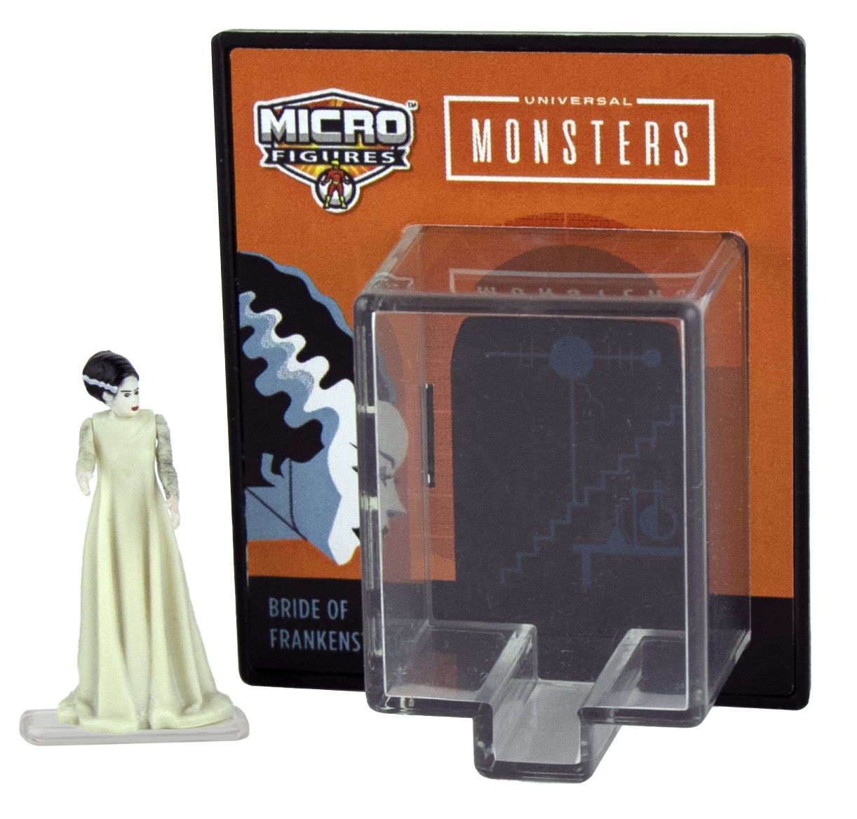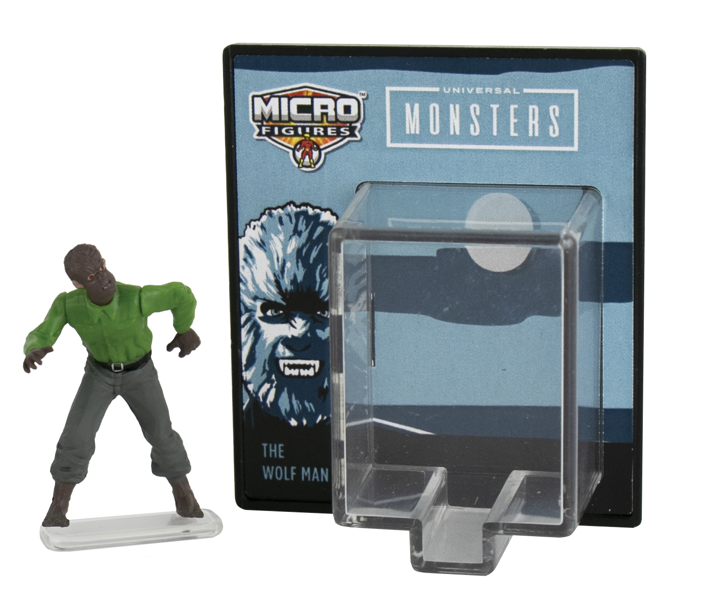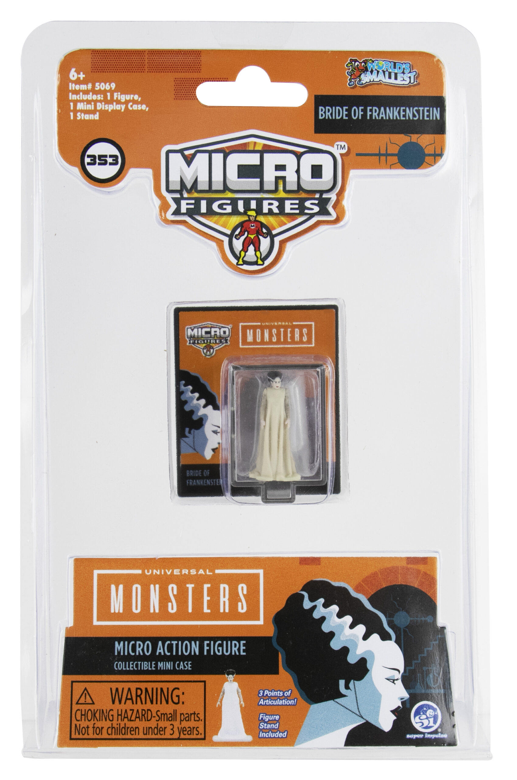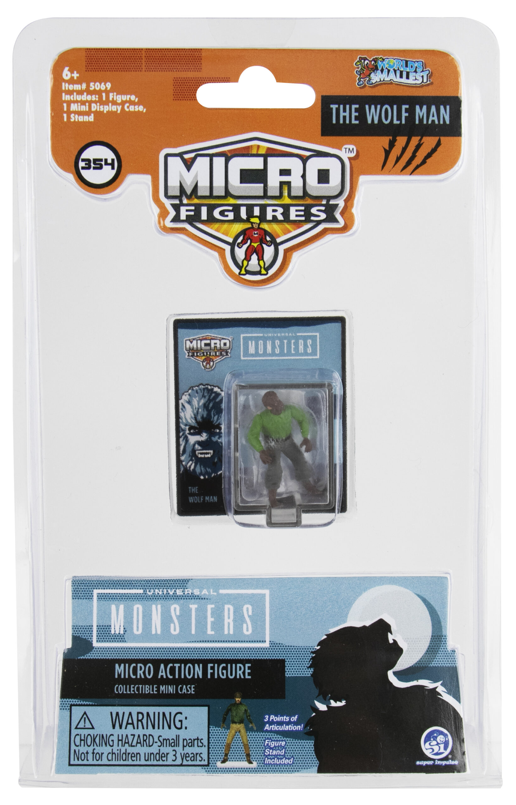 Produced by Super Impulse, this is part of their World’s Smallest line of toys. This features three different images from the Universal Monsters movies. They are Frankenstein’s monster Stock #352, the Bride of Frankenstein Stock #353 and the Wolf Man Stock #354 The figures are approximately 1.25″ tall and include a stand and display box and have three points of articulation. We pulled these from a sealed case that we bought direct from Super Impulse and they have been stored in a smoke and pet free environment.