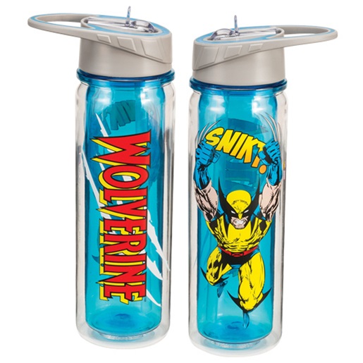 This is a clear 18 ounce double wall Eastman Tritan water bottle featuring the comic art image of Wolverine on one side with his name logo on the other. It Resists Condensation, has a spill proof sport lid with a straw and is BPA Free. It is new and unused, perfect for hydrating on the go. Hand wash recommended for this new unused bottle that has been stored in a smoke and pet free environment.